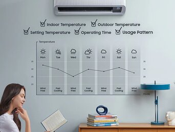 Basierend auf diesen Daten wählt das Gerät automatisch den optimalen Betriebsmodus – z. B. Kühlen, Entfeuchten oder WindFree™ – und passt die Einstellungen in Echtzeit an. Das Ergebnis: immer angenehmes Raumklima bei minimalem Energieeinsatz.